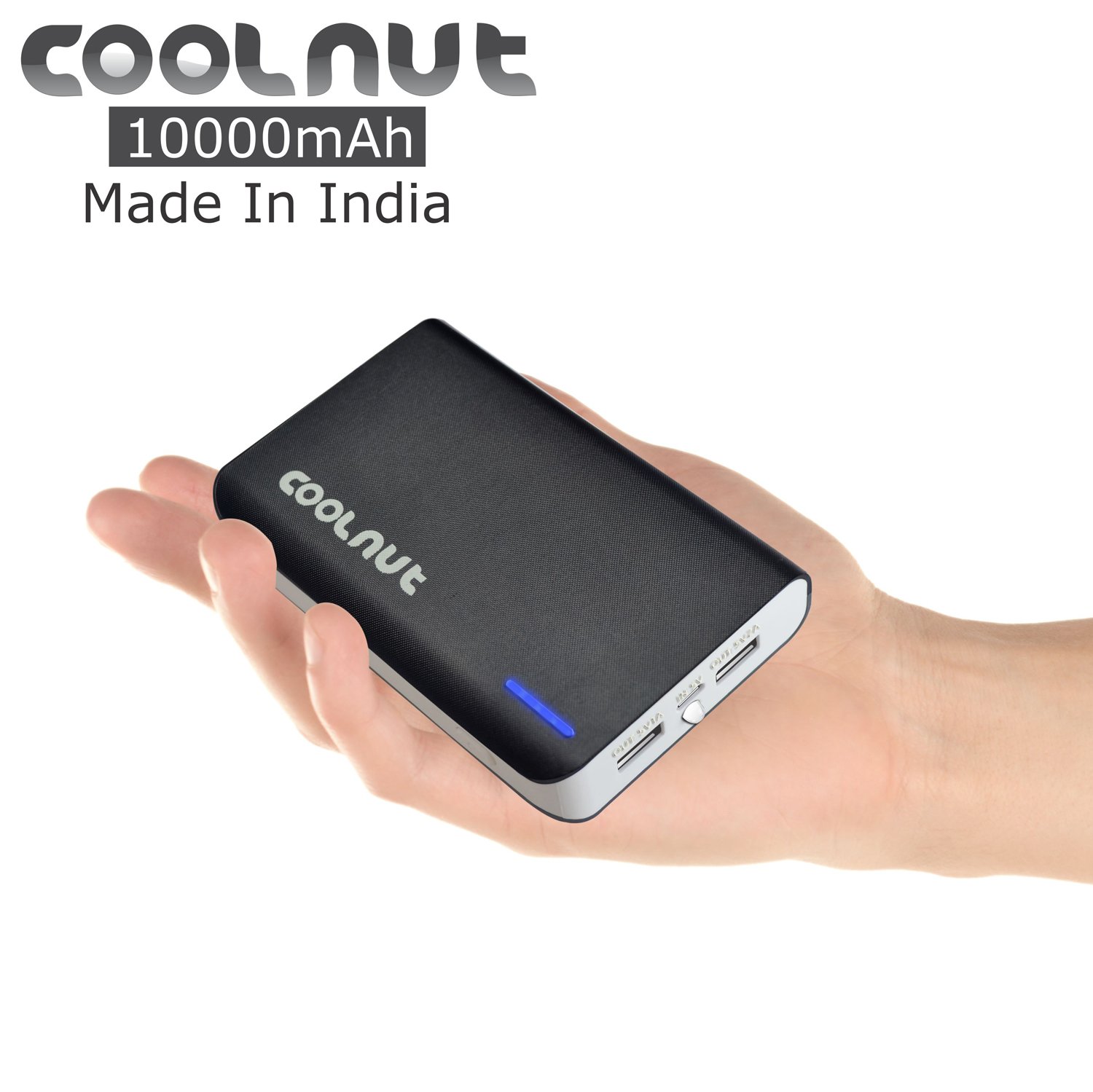 Offered by Coolnut, this 10000 mAh capacity power bank anytime keeps your electronic devices charged while you are on the move. It incorporates two USB output charging ports, one, standard 1A and other rapid charge 2.1A. With beautiful black color ABS+PC shell casing that gives it an elegant look, this stylish and durable power bank is a definite must have for all.